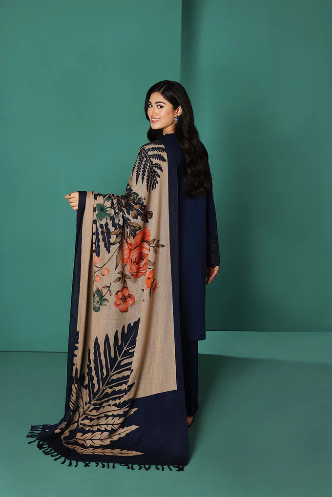 3 Piece Unstitched Heavy Embroidered Dhanak Suit ( Printed Woolen Dupatta )
