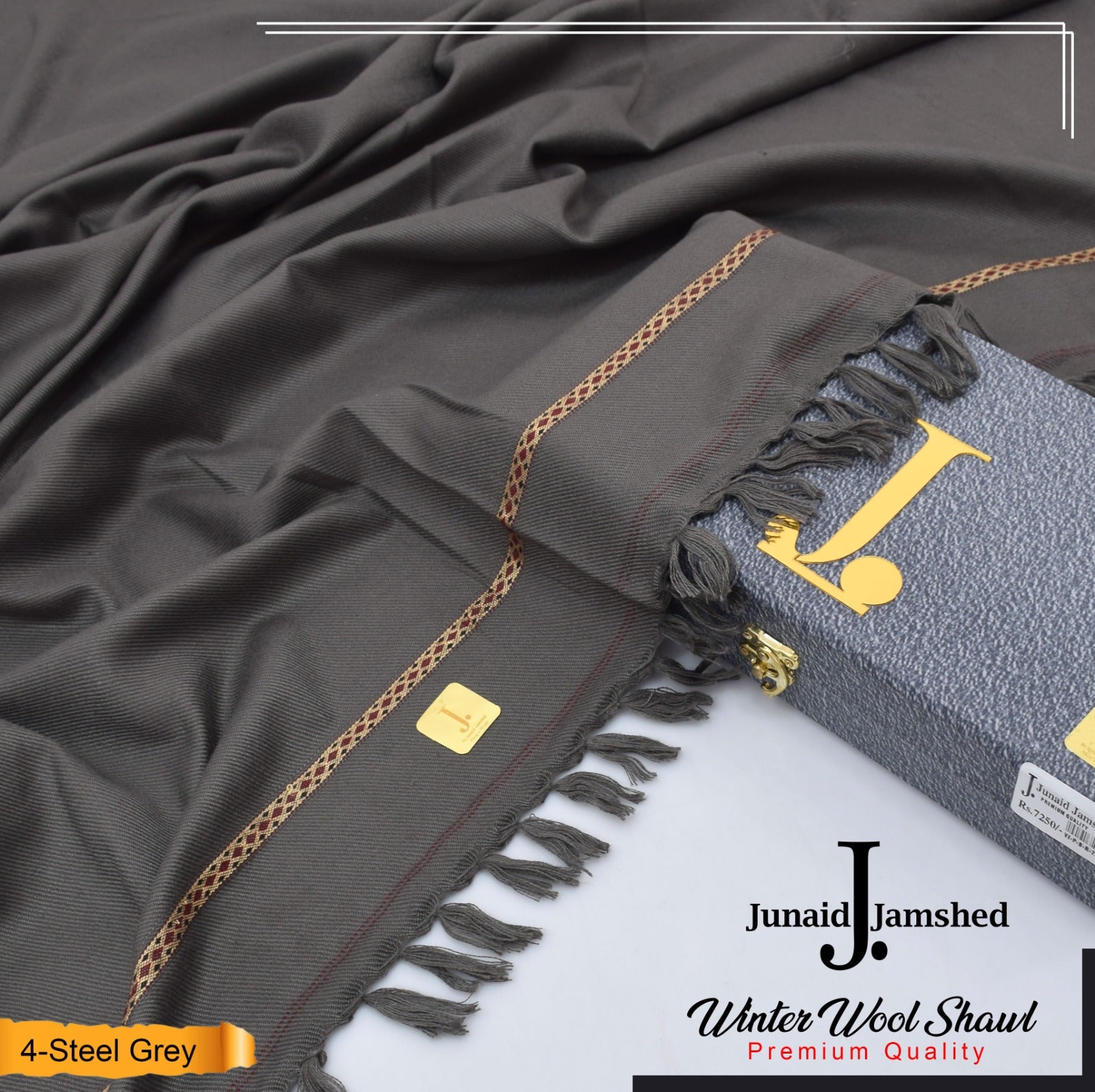J. PREMIUM WOOL SHAWL FOR MENS WITH GIFT BOX & BAG ( Steel Grey )
